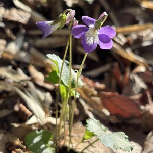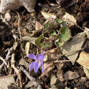 ニオイタチツボスミレ(匂立壺菫) スミレ科スミレ属 濃い紫の丸い花弁に💜 中央が白く抜けているスミレさんを 尾根筋で沢山見ることができました💜 香りを確かめるとお香のような香り💜 落葉の匂いも混じっていたかなぁ✨ 花柄のビロード状の毛も確かめました 葉はハート形、先は鈍頭💚 花の最盛期を過ぎると葉の幅が狭い長三角形の葉になるそうです💚😳