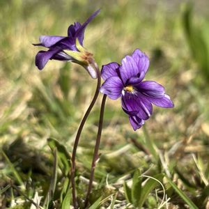 マキノスミレ(牧野菫) スミレ科スミレ属 シハイスミレの変種 牧野富太郎博士のお名前のついたスミレ🥰 花友さんから開花情報をお聞きして嬉しくて飛んで行きました💜✨ シハイスミレとは全体の姿が全く違っていました💜✨ 大きな違いは葉です 葉はシハイより細長い披針形です 葉の出始めは垂直に立ち、葉柄の長さは花の近くまであります 葉柄が斜めになっても葉身は地面まで垂れ下がりません 葉裏は薄紫色を帯び、後に薄緑色になります シハイよりも花がキリっと引き締まり 色も紫が濃いと思いました💜✨ お花に会いに行く時の牧野博士が 正装して立っている姿のようでした💜✨ 夢のようなご対面が叶い 花友さんに感謝です😊💓💓💓