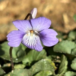 ノジスミレ(野地菫) 3 *スミレ科スミレ属 花期は3〜4月 秋田県を北限として屋久島までの低地の市街地や田畑など人の手の加わった場所に多い。 ・花は青みがかった紫色 ・花弁が波打つ ・側弁は無毛 (有毛ならオトコノジスミレ) ・距は細長い ・ほのかな 良い香りをもつ ・葉は披針形で先が尖り白い短毛が生え 葉柄基部には多い (葉縁に微毛があるのも特徴) ・葉柄にわずかに翼がある 去年は3月中旬に見ていましたが、今年は大分遅れてやっと咲き出しました❣️ 4月4日撮影