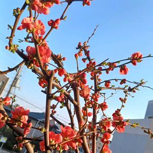 こんばんわ〜🌠 今日も一日お疲れ様でした〜<(_ _)> 今日のベランダ🎶 1️⃣ボケの花🌼蕾が膨らんで来ました🤗ベランダでの開花見られるかな〜❓❓❓😅 2️⃣プリムラ・ウィンティーライムグリーン💚 お花咲き出しました🌼 今年は一つの芽🌱からなのでちょっと少ない🦆ですね〜😅 3️⃣黒法師💚2022/11に蕾ついてお花が咲いて感激しましたが🤗 花が咲くと株が枯れると聞いて心配しましたがお花カット✂️した後も元気に育ってくれて嬉しいですね〜*ପ(꒪ˊ꒳ˋ꒪)ଓ。ෆ。 でも頭重たく😅💦 下に下ろすとバランス崩れどうしようと悩みこの姿に(≧∇≦) 4️⃣毎年綺麗に咲いてくれるツルバラ🌹サマースノー🤍 果たして避難場所でどうなるかな❓😅💦 5️⃣羽衣ジャスミンも折角出てた赤い花芽も皆✂️✂️✂️この茎だけ残したのですが❓❓❓❓ 3/3㈪からマンションの大型補修工事始まるので足場組始めたら青空バックは撮れないと今日投稿しました 3/10〜15まではベランダの要らないも処分してくれるとの事 助かりますね〜⸜(๑ᐢ ᵕ ᐢ๑)⸝♬~ でも鉢移動はその後になりそうなので中々落ち着かない状態😅💦💦💦 しゃあないですね〜🤣🤣🤣 🏷とにかくGS楽しもう! 🏷しゃあないわ 今日から3月ベランダでのお花 撮れない🦆ですが〜宜しくお願いします〜 🏷で元気に咲いてるお花見られるので見ていただけたら嬉しいです〜( ´ ˘ `)_ _)ペコリ