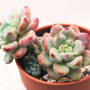 うちの寄せ植えのロッティさん。 寒さやら水やり不足で葉が少ない笑 透き通った感じのお色でほんのり葉先がピンクっぽいかなぁ。 よしたんぬさん、参考になるかわからないけどどうでしょう??