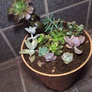 買ってきた多肉ちゃん達を 無心になって一時間近く 植えていました‼️😆 初めてだけど、 少しはかわいくなったかな❓