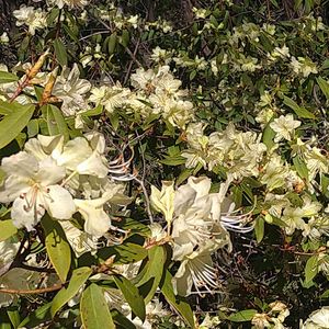 ヒカゲツツジ 淡い黄色で少し緑がかった花が崖に群生している ✨ 当地でも山地に生えていて、山登りのご褒美となるのだけれど、ここは楽をさせてもらって史跡生野銀山の駐車場から眺めさせていただく(o^^o) 約1千株が群生すると言われる朝来市指定天然記念物… かつて坑道で働いていた方たちも眺めて、しばしの休息を取られたのだろうか… 日曜ビタミンカラー🏷