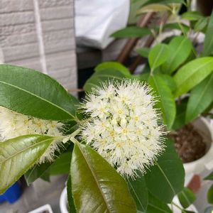 レモンマートルのお花が咲きました✨葉っぱはレモンのような香りですが、お花は甘くマイルドでハチミツみたい✨なんてクンクンしてたら、ブインっと🐝が!気をつけなくては💦