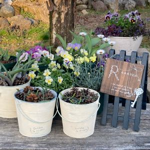 プレゼント用の寄せ植えを作りました😊 姪っ子用に夢カワ系を2つ💖 ピンク系のチューリップ入りです🌷 アリッサムを撒くのが遅れたので、まだ小さくて埋もれてます😅