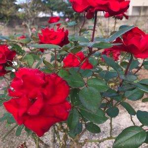 🍎💚🍎💚🍎💚🍎💚🍎💚 赤く 赤く 何年もず〜と安定して咲いて 葉🌿💚も色濃く、虫にも強く 大輪の薔薇🌹🌹がない時も わたしの庭を彩ってくれています😌 名前が、分からないのが残念ですが… p(´∇`)q ファイトォ~♪