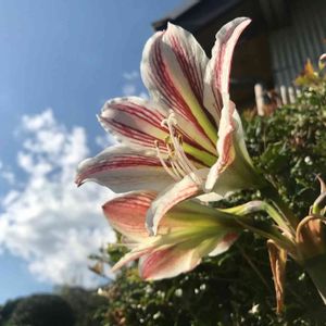 いよいよ咲き始めた 皇帝ダリア 今年は切り戻りの タイミングが良くなかったかな⁉︎ こーんな見上げる高さに なっちゃいました。 さてさて 霜が降りる日までの 毎日のお楽しみ♡