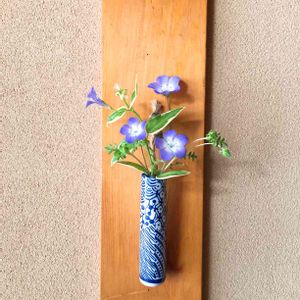 青い花にはこの花器を合わせたくなってしまいます💙 葉は山桜です(╹◡╹)