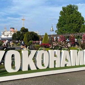 ローズウィーク開催の山下公園 バラのアーチ