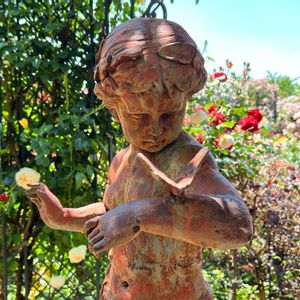 横浜イングリッシュガーデンの像とバラ