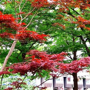 夏でも赤い紅葉とアジサイの植栽 山下公園