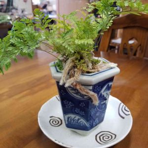 ❁.。トキワシノブ。.❁ 涼しげな見た目が夏にピッタリの シダ系植物です🌿 最近は梅雨が戻ってきたかのように 雨が続き蒸し暑いですね'◌̥*⃝ トキワシノブはじめじめとした環境が好きなので、 この時期とってもおすすめです✨ 耐陰性があるので、 室内の明るい場所で楽しめます🌱 シダ植物は苔玉や吊り仕立てなど さまざまなアレンジができます🌼 涼しげな印象を与えてくれるので、 ぜひ取り入れてみてください🎐 *育て方* 苔玉の場合、室内の明るい窓辺レースカーテン越しがおすすめです☀️水やりは苔玉の表面が乾いたら水に浸ししっかりと吸わせてください🥛夏場は乾きやすいので注意してください。
