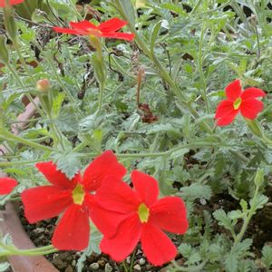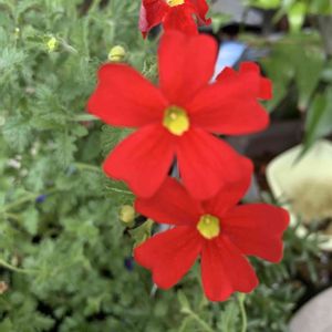 サンブリテニア スカーレット* 初めてのお迎えです。 5月ごろ買おうか迷ってその時はやめてしまったお花。 違うお店でまた出会ったのは何かの縁と思い今回お迎えしました。 小さな赤いお花が風に揺られてとっても可愛いらしいです❤️❤️