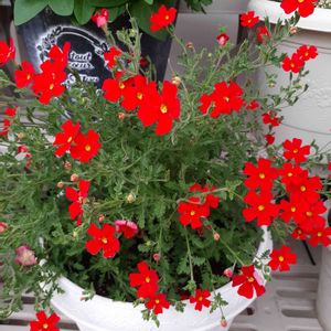 サンブリテニア スカーレット 友人宅の水やりで目をひいた赤❤ 毎年上手に咲かしておられる˗ˋˏ♡ ˎˊ˗ ☔の時期は軒下に置いて、細かい気遣いが✨ なのに、上からシャワー、バーってかけてしまった😅