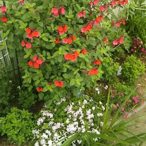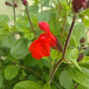 おはようございます😃 今月咲き始めた チェリーセージ🍒 意外にも 近所のオバチャン達から 大人気です😅 調子に乗って大暴れしそう💦