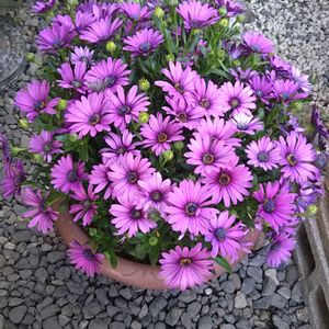 お疲れ様です😃 元・見切り品で2年目の オステオスペルマムです💜 ほぼ満開になりました😊