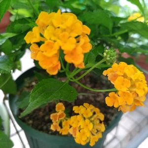 レモンランタナ🤗やっともりもりになってきた💛 切り戻しや移植などを経て小さくなってたうちのレモンランタナ、気温と日照量が増えてまた以前の勢力に追いつきました。 強い子ですね😊私もそんな復活力にあやかりたいです。 体温越えの最高気温などが予想されてる地域の皆さん、こまめな水分補給や熱中症対策をして、植物活動なさってくださいね。梅雨明け後は、なりやすいそうですよ。 健やかな1日になりますように🍀