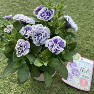おはようございます 3年連続のお迎えです 冬越しはできませんが、毎年晩秋迄お花を楽しませてくれます 薄紫に白の縁取りのお花 株姿もコンモリなるのがお気に入りです 八重咲きベチュニア 花衣シリーズ 瑠璃静(るりしずか) ベランダ スモール園芸 5号鉢
