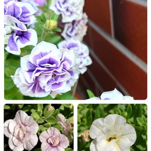 八重のペチュニアさん 一体何枚 花びらがあるのやら? 🤍💜꒰ঌ( ˶'ᵕ'˶)໒꒱💜🤍