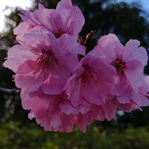 駐車場の桜が咲き始めました 少しピンクの濃い色 川津桜かな?