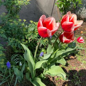 おはようございます☀ 暑くなりそうです。 チューリップ ムスカリ コデマリももうすぐ🥰