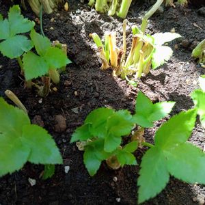 三つ葉が去年生えていた所から出てきました☘️ 朝、縁に沿って水滴が付いていてみずみずしい✨ そして、収穫が終わったカリフラワーから脇芽が🌱 このまま様子を見ながら育ててみます😊
