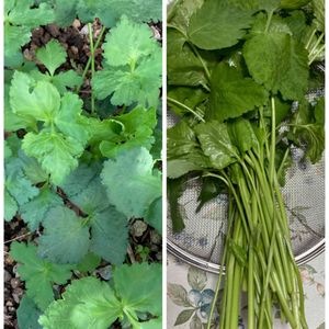 ご存知、三つ葉です☘️ 先程庭で収穫しました。 10年以上前に、根付きの三つ葉を植えれば育つと聞いて、食べ終わってから根を植えました。 それから毎年増えて増えて…花が咲くと固くて食べられなくなるので、4月は大体1日おきに収穫しています😅 嬉しい悲鳴なのですが…ですからお庭を大事にしている方に三つ葉を植える事はお勧めしません😥 何しろ発芽率が良過ぎます💦 今庭は三つ葉とハナダイコンの海の様になっています☘️