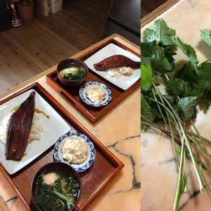 お昼ご飯 鰻、冷凍のまま、料理酒をかけて、グリルで焼きました。 ぬた 三つ葉、卵、白だし吸い物 庭の三つ葉が使える大きさになりました。 いつも1人でに種子を飛ばし、春には、柔らかい香り豊かな食事に、成ってくれます。 当たり前過ぎて、放置気味でしたから、堆肥を補充する事で、三つ葉さんへの感謝に変えました。