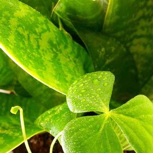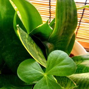 サンスベリアの鉢から突然出てきた三つ葉☘️ 小さくて可愛いからそのままにしてたら こんなに大きくなってる♡ すっかり共存している(☘️´ω`☘️)*✲゚*