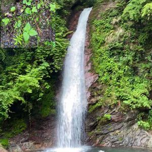 6/26 秩父華厳の滝にて。滝の麓に10cmくらいの大きな三つ葉☘を見つけました。
