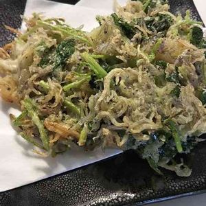 小女子と三つ葉を揚げました。 稲庭うどんに合います🍜