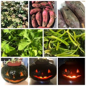 こんばんは🤗 紅はるか🍠2回目の収穫です。焼き芋にしていただきました🤣 三つ葉は今年最後の収穫、ポン酢でいただきました🤣 ハロウィン🎃カボチャ 暗くして撮ってみました🤣