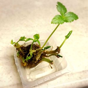 豆苗を真似てミツバも水耕栽培☘️ ちっちゃい芽が出てきました~!