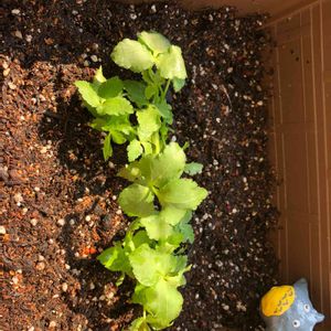 三つ葉の苗をいただきました✌️😆🌱お野菜の鉢に植えました✌️😃🌈トトロ側はほうれん草、下側は大根の種がうえてあります✌️😉🌱種が鳥さんに食べられないよう、見張り番のトトロです?🤪🌱💕