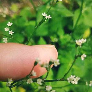 去年の9月 スーパーで買った三つ葉🌿 食べた後の根っこ部分(水耕栽培のスポンジ付き)を 小分けにしてスポンジごとプランターに植えました。 大きくなったのは また食用にして😋 花も見たいと思いそのまま伸ばしていたところ 小さな小さな花が咲きました。 マクロの世界です👀