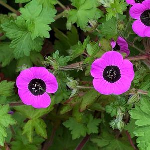 ゲラニウム ビウンキナータムです。真ん中の黒い模様が面白いです。一年草タイプのゲラニウムで、タネが飛んで勝手に生えてきます。帰化植物になりそうな勢い😱