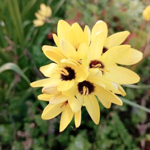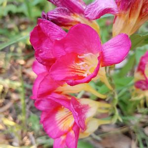 皐月・令和物語✨✨✨ 💛💛💛 おはよう ございますぅ(*ˊ˘ˋ*)。♪:*° イキシアは、アヤメ科イキシア属の球根植物です。 南アフリカが原産で、原種が40〜50種ほどあります。 4〜5月頃に、針金のようにしなやかで細い茎に白やピンク、黄色、青、複色などの花を穂状または円錐花序にたくさん咲かせます。 また、花は夜や雨の日には閉じて、晴れの日には開く性質があります。 2025/04/29 撮影