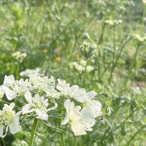 こんばんは*˙︶˙*)ノ" お庭のオルレアも沢山咲き始めました 毎年こぼれ種で沢山咲いてくれます 白いレースのような繊細なお花さん どんな色合いのお花さんとも合うので この時期お庭で活躍してくれます🤍🍃 花後の後片付けは大変です💦 🐺会〜✺⋆* (⸝⸝⸝´▽`⸝⸝⸝)⋆*✺✨✨💕