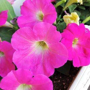 ペチュニアの白地に紫縞入りの花 2023-04-22