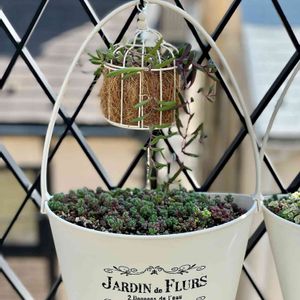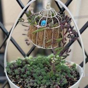 こんばんは✨ 🏷⸒⸒ネックレスの日に参加させてくださいねぇ🎶 ルビネちゃん、可愛いから増やしたくて、ダイソーの鳥かごに入れてみました🥰 セリアで買ったヤシガラ?の中に、台所の不織布シートを入れて、培養土入れて雨ざらしにしてみましたが、元気に育ってるから安心してます(Ŏ艸Ŏ) パープル💜ちゃんもプリプリ元気で嬉しいです💕 小さい鉢の子は、大雨だったので家の中に置きっぱなしだったら徒長してきました。 育てる場所で色々変わるのも面白いですね! まだまだ勉強中です…φ(⑅•ᴗ•⑅)メモメモ。