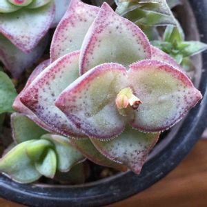 熊童子の足元にすみっこ暮し中のローラの赤ちゃん(●^o^●) お母さんは双子ですが、この子は三つ子!‼