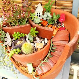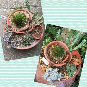 割れた鉢を放置して数年… ブロークンポットガーデンというアレンジがあるのを知り、ひとまず大まかに配置してみました。 これから少しずつ手直ししていきます🌱