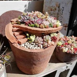 先日、息子が自転車でぶつかって、お気に入りの鉢が割れてしまい😭捨てようかと思ってましたが、いろいろ調べてたらブロークンポットなんてお洒落なのがある!と、実践してみました♡家にあった多肉の寄せ植えと、おうちの置物で♡ どうでしょうか?お気に入りの鉢、再利用できたし、なかなか可愛くできたと自画自賛◡̈*❤︎
