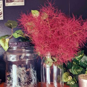去年植えたマッチ棒サイズのスモークツリーからモフモフを収穫✨ 適当な空き瓶飾っても雰囲気が出るスグレモノ(*´∀`*) 左瓶→味付海苔 右瓶→梅干し