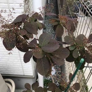 スモークツリー “リトルルビー" 矮性で花付きがとても良い❣️ 寒くなると紅葉した葉が綺麗。 うーん、うまく撮れない💦赤なんです。 もう少し綺麗な赤。