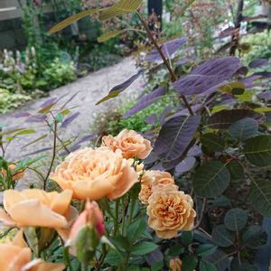 スモークツリーさんをお迎えしました。 雨の中、はるばる東京から来てくれたスモークツリーグレース。 無事に根付いてくれますように…✨ 後ろの木塀を背景に植えたいのだけど、幹がカーブしているので植える向きに少々悩みます🤔