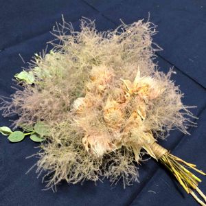 頂き物のミニブーケに入っていたお花や、庭の草花をまとめてみました。 バランスをとるのが難しい〜、なんとかこうとか形になったかな? 今までは切り花をフラワーベースにさしておくだけの楽しみ方だったけど、新しい、お花の楽しみ方を見つけました😊 スモークツリーの存在感♡