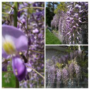 2023/04/20 お隣さんの塀から… 今年は見事です~💜🤍💜🤍💜🤍 思いっ切り沢山の花房が見えて、もう少ししたら凄く豪華になると思います。 マルハナバチが、香りなのかな?開花前から偵察に来ていたけど、もう一日中ブーーーン🐝 ブーーーン🐝 ブーーーーン🐝 クリーニング屋さんの担当お姉さんが怖がっています。 毎年のコトなので、また今年も大丈夫と説明しました。