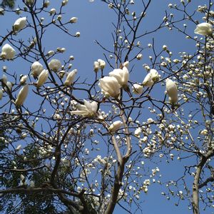 2023/03/28 昼過ぎ… 振り仰いだ空は 蒼空に見えた 白木蓮がいよいよ元気に 開け 啓けよ 手前の開いた枝 今朝見たスケスケさんは 確かあの枝 お花も大きい💕