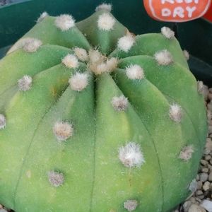 どのサボテンも この夏 意外と順調♡ ギムノカリキウム属以外は直射日光ガンガン当てているんだけど、今年は葉焼けしてるの無いんじゃないかな? ただ、いつもよりしぼんでぺちゃんこになりかけたり、細くなったりし始めるサボテンがちらほら。 暑すぎるから水を躊躇しちゃうけど、夕方に少量毎日~3日ペースであげてます。 このコもぷっくりなりつつある所。 下のシワのところがぺちゃんこになるところ。 色や艶は今までに無くイイ感じ゚+.゚(´▽`人)゚+.゚